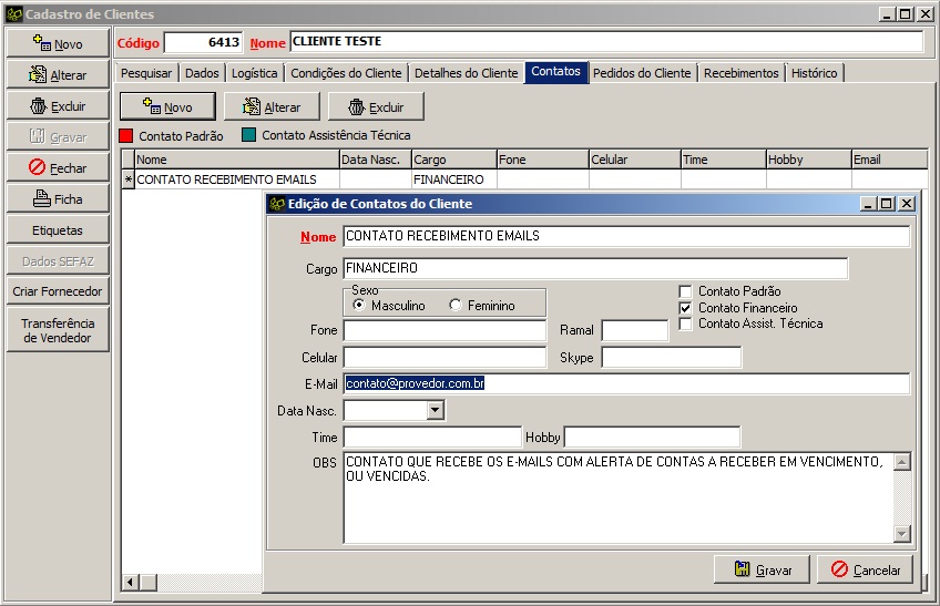 Portanto, mesmo que o cliente tenha vários contatos cadastrados o e-mail só será encaminhado ao contato marcado como financeiro.