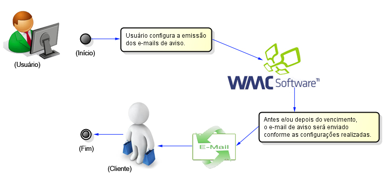 O processo de Alerta de vencimento de Contas a Receber (à vencer e/ou Vencidas) consiste em enviar uma mensagem programada antes do vencimento de uma conta, e opcionalmente após o vencimento da conta, avisando o cliente da existência de débito em seu cadastro.
