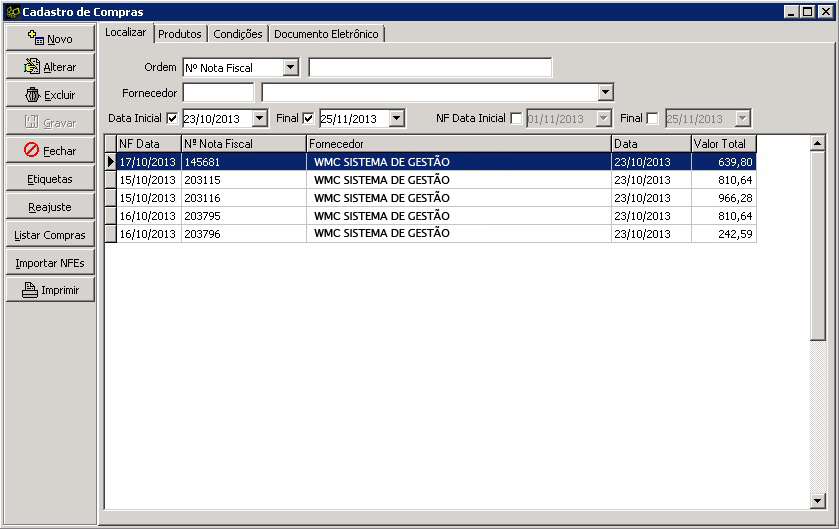 O módulo de COMPRAS presente no Gestão WMC é um integrador de NF-e, porém o processo que ele realiza é o contrário da emissão: O Gestão WMC “pega” o xml recebido de seu fornecedor, e alimenta o sistema com as informações contidas nele.