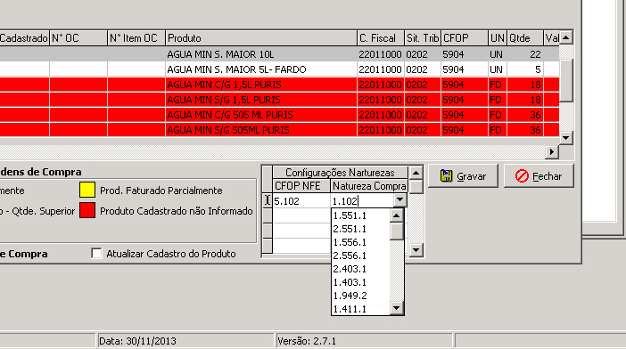 Outro detalhe importante na importação de uma nota em xml é o que diz respeito à natureza de operação que está sendo gravada no momento do cadastro.